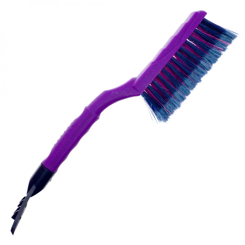 Автомобильная двусторонняя щетка, длиной 420мм. С одной стороны усиленный мощный скребок с зубьями-ледоколами, 87мм шириной, для удаления льда со стекол, а с другой стороны упругая, распущенная 4х рядная щетина средней жесткости, длиной 165мм, шириной 40мм и высотой 55мм. Корпус рукоятки выполнен из ударопрочной пластмассы.