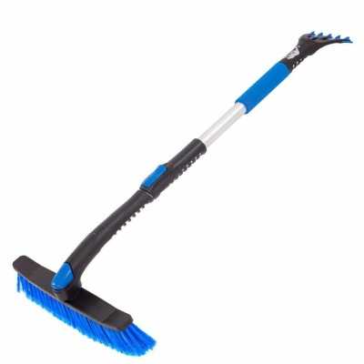 Рукоятка раздвигается и фиксируется на выбранной длине, поэтому щеткой можно без труда очистить капот или крышу авто, стоя с одной стороны.