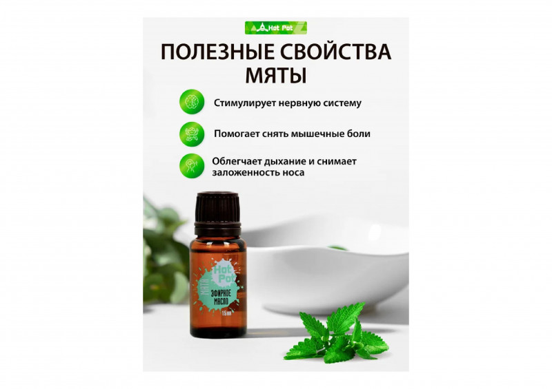 Эфирное масло Hot Pot Мята, 15 мл 32264 сделает банные процедуры еще полезнее.