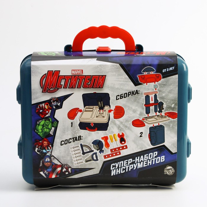 Наблюдать за тем, как папа что-то чинит, очень увлекательно, но веселее научиться этому самому. Набор инструментов с любимыми героями Marvel даст малышу такую возможность! Все элементы выполнены из безопасного пластика и не нанесут вреда малышу. Рекомендуется для детей от 3 лет. Набор удобно хранить и брать с собой, благодаря компактному чемоданчику размером 27,2 см х 10,3 см х 21,8 см.