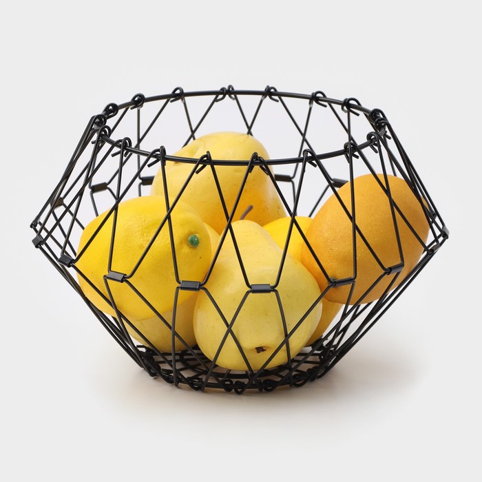 Стильная ваза для фруктов станет идеальным дополнением любого интерьера. Корзинка выполнена из окрашенного металла, что защищает её от коррозии. Благодаря оригинальному дизайну, фруктовница станет украшением вашей кухни или праздничного стола. Удобная конструкция позволит дольше сохранить фрукты свежими.