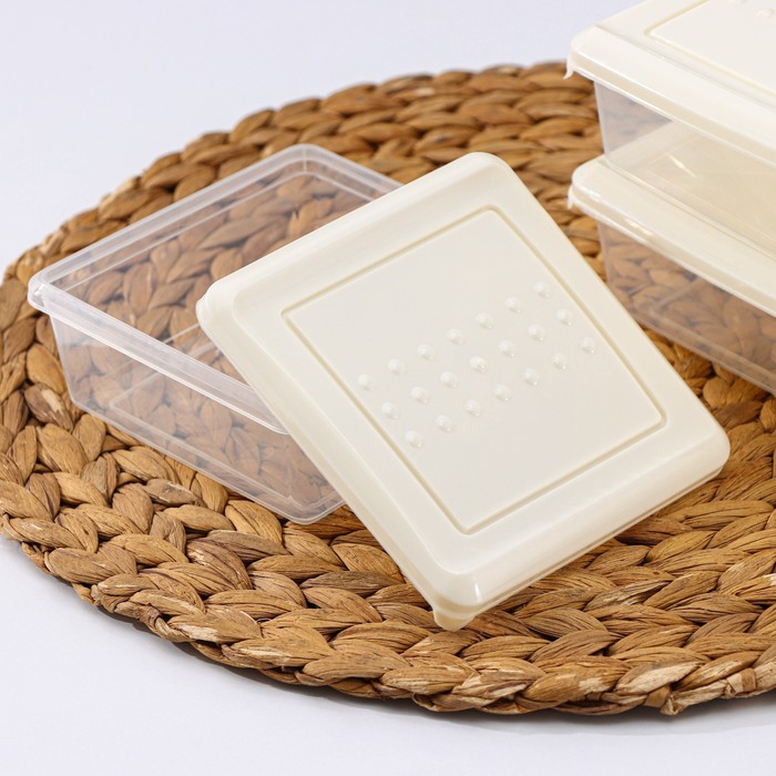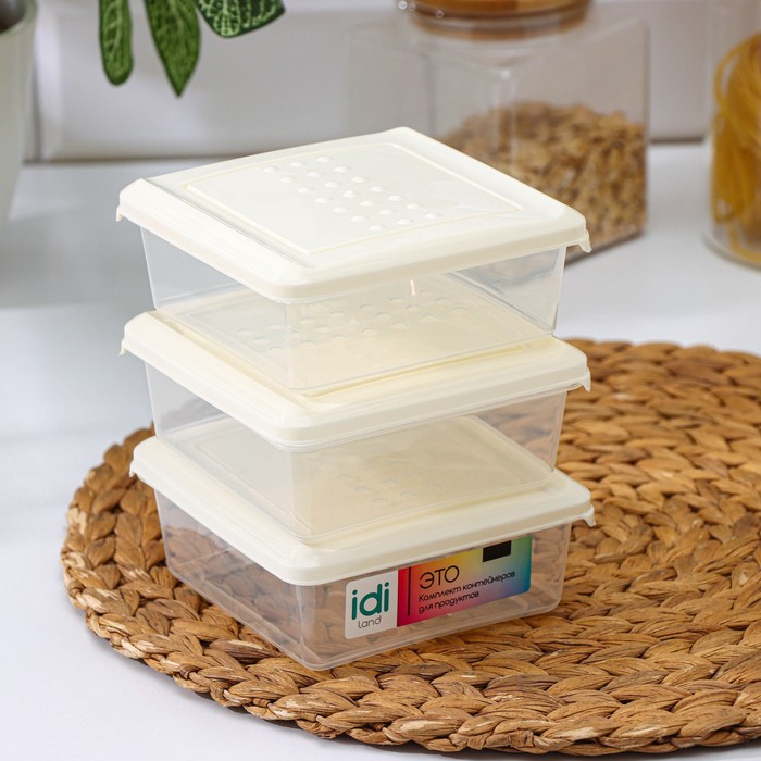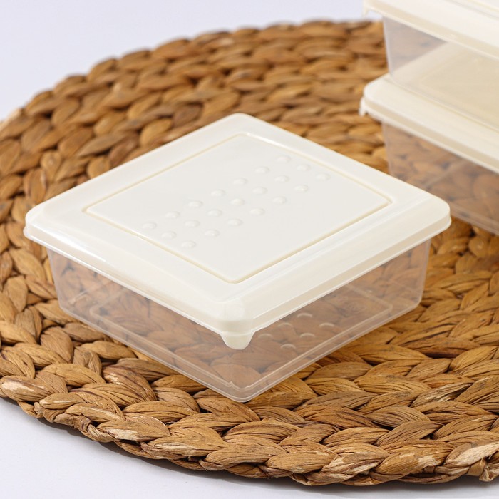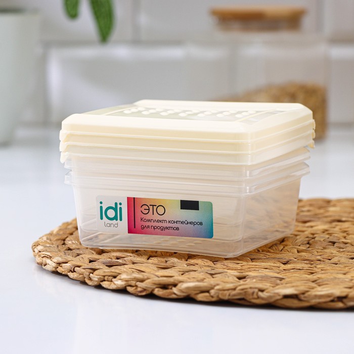 Набор контейнеров, 500мл, 3шт, квардратный, цвет светлобежевый, Asti