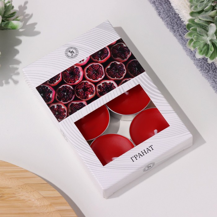 Набор чайных свечей ароматизированных в подарочной коробке, 6 шт "Гранат"
