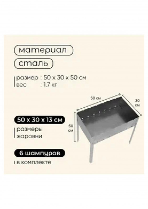Мангал 6-шампуров 300х500х0,8мм в коробке