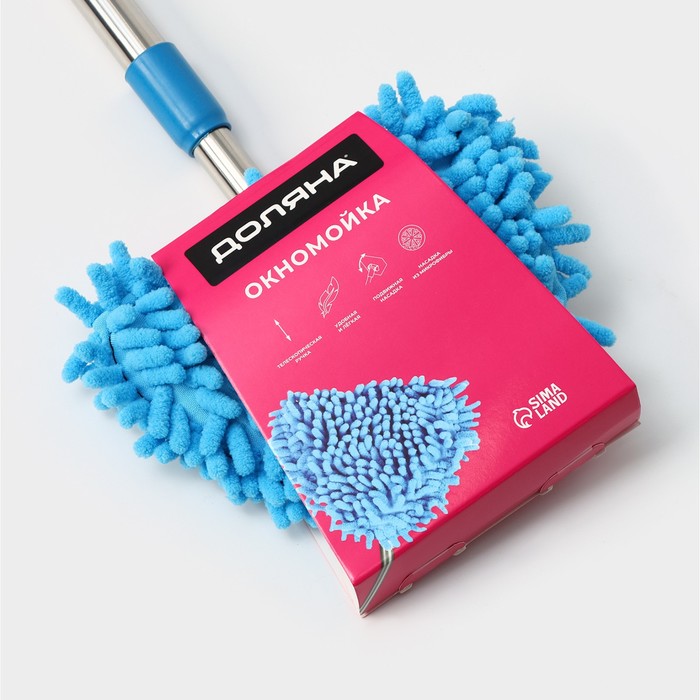 Окномойка с телескопической металлической ручкой,13х13х55(92)см, цвет синий