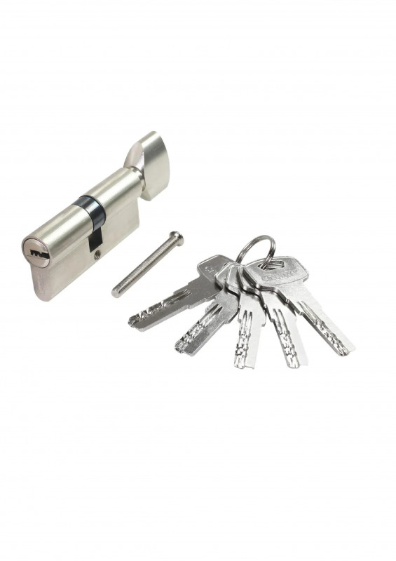 Механизм цилиндровый для врезных замков. Европрофиль. Перфоключ. Материал цилиндра - сталь, цинковый сплав. Ключ-вертушка. Выступающий на 30 градусов из плоскости механизма кулачок защищает цилиндр от выбивания из двери.