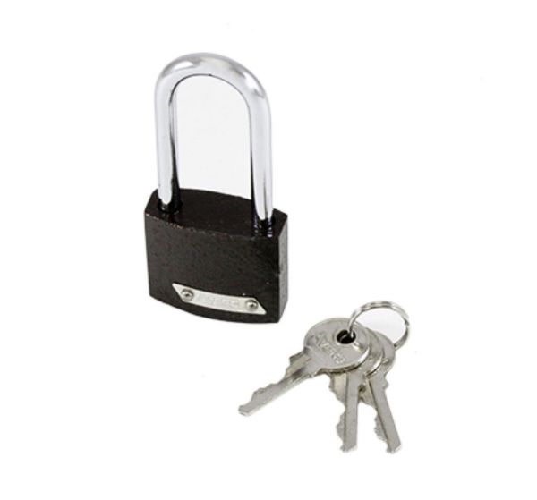 Замок навесной, шириной 32 мм, высотой 72 мм и дужкой диаметром 5 мм, предназначен для запирания дверей жилых и подсобных помещений. Имеет чугунный корпус с порошковым антикоррозийным покрытием и удлиненную закаленную стальную дужку. Комплектуется тремя английскими ключами.