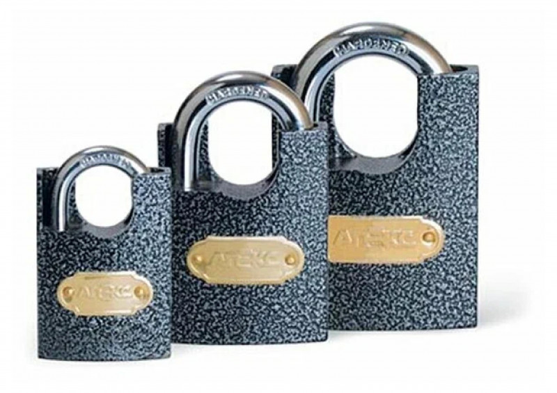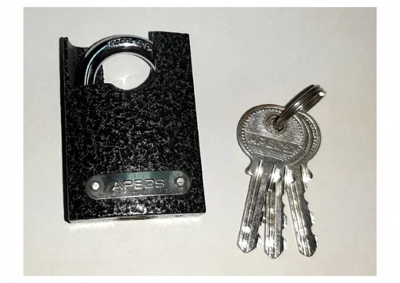 Бюджетный навесной замок Apecs китайского производства. Корпус изделия сделан из чугуна и покрыт цветным полимерным составом, который защищает его от влаги и кислорода. Этот внешний слой устойчив по отношению к бытовой химии, ГСМ, перепадам температур и механическим воздействиям, кроме антикоррозийной выполняет также декоративную функцию.