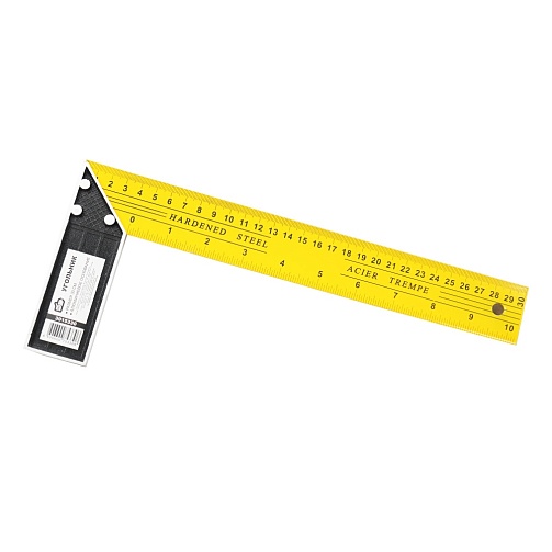 Применяется для выполнения измерительных работ и проверки прямых углов на отклонения от 90 градусов. Мерительная шкала нанесена на полотно с одной стороны. Угольник имеет большую длину - 30 см, и ширину 3см.