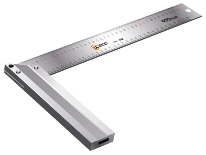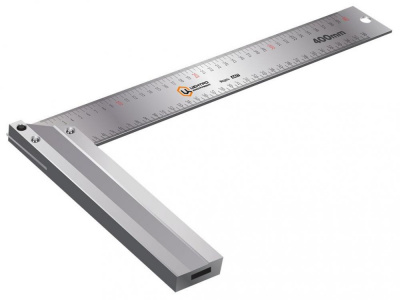 Применяется для выполнения измерительных работ и проверки прямых углов на отклонения от 90 градусов. Мерительная шкала нанесена на полотно с одной стороны. Угольник имеет большую длину - 40 см, и ширину 4см.