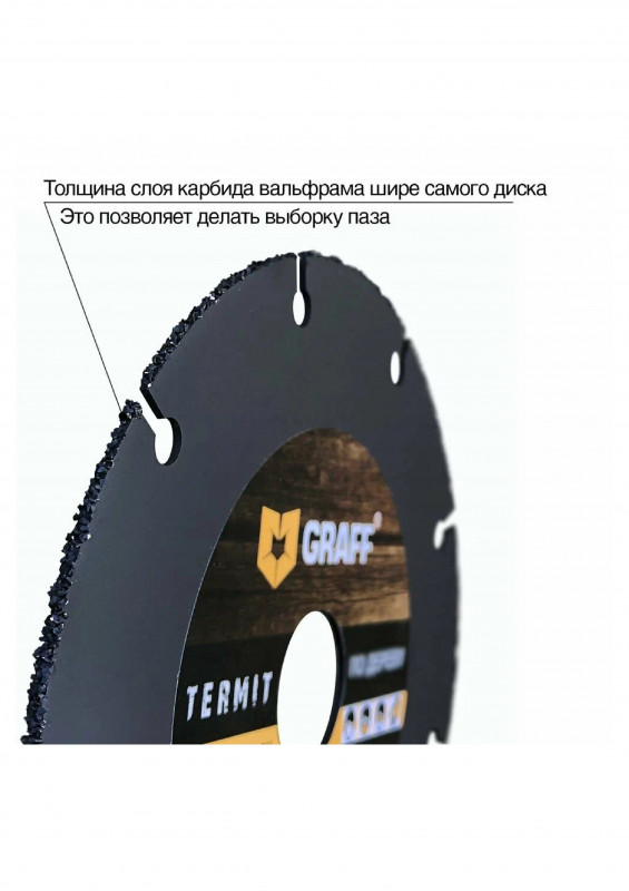 Отрезной диск GRAFF Termit изготовлен из карбид-вольфрамовой посыпки, что гарантирует долгий срок службы и высокую производительность.